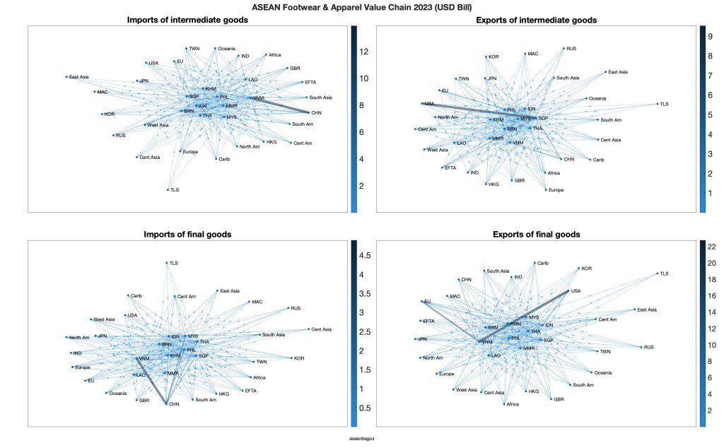 Trade diversion is a short-term issue. The bigger and more complicated issue is how the tariffs on Chinese goods and possibly on other Asian economies will impact value chains. The interdependence is evident from the following figure and similar figures can be generated for the auto and electronics supply chains. All show that while Indonesia may not be the biggest participant in value terms, it is a highly connected participant.