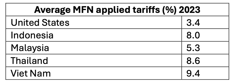 It is not clear how reciprocal tariffs rates will be calculated, and it appears that non-tariff barriers and other behind the border barriers may also be considered as the U.S. draws up its coercion measures. The average most favoured nation (MFN) applied tariffs differ from trade-weighted MFN tariffs.