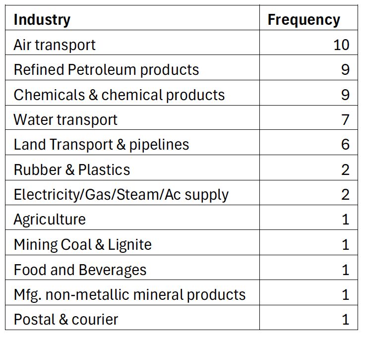 - Manufacture of coke and petroleum products (Refined petroleum products)